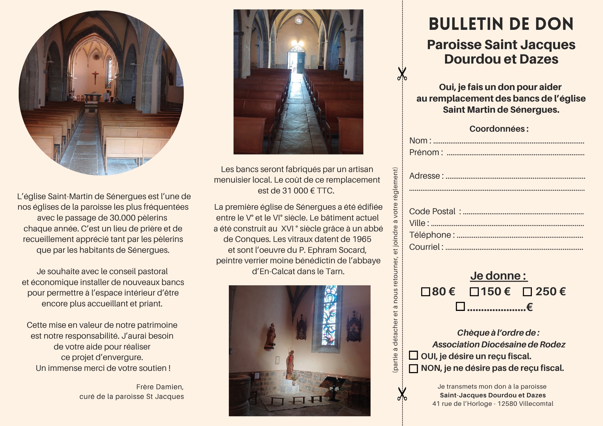 PROJET DE CHANGEMENT DES BANCS DE L EGLISE DE SENERGUES
